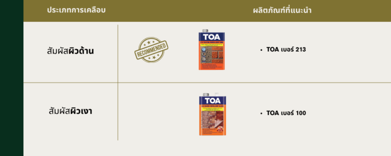 - พื้นผิวต้อง สะอาด แห้ง ปราศจากฝุ่นละอองหรือคราบน้ำมัน